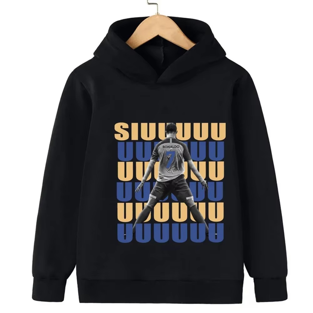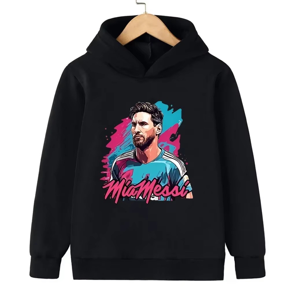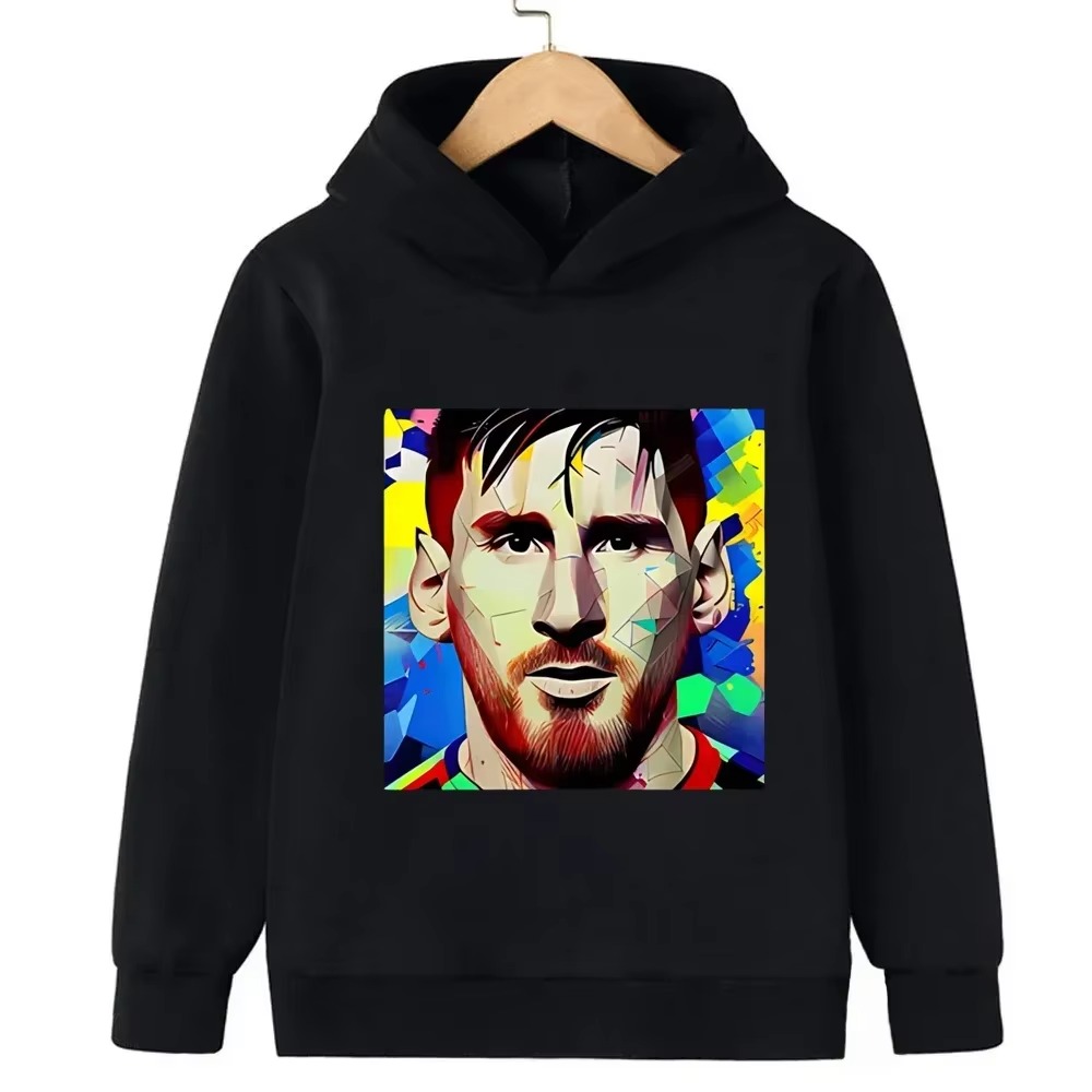 Messi Printed Children’s Hooded Hoodie Plus Velvet Sweatshirt Casual Sportswear Pullover Black Top Boy and Girl Kid Baby Clothes