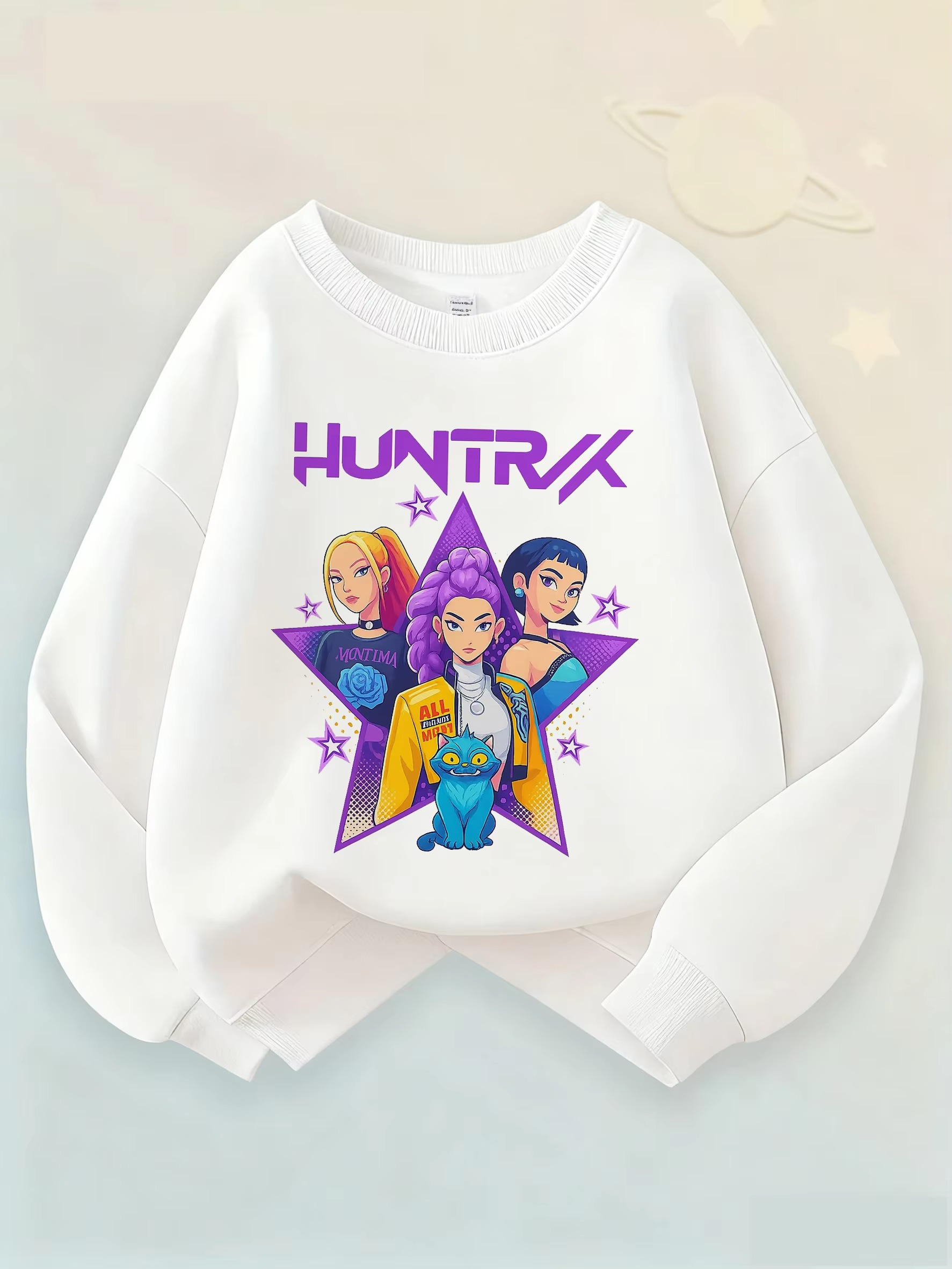 Huntrix Hoodie Manga Kids Kpop Demon Hunters Movie Fans Gift Children’s Sweatshirt Cute Tiger Hoody for Boys Girls