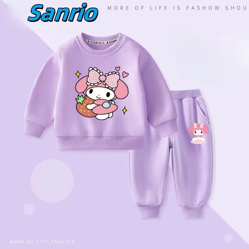 Sanrio Autumn Baby Girls Clothes Set Kid Cartoon My Melody Printed Sweatshirts Pullover Top and Pants 2PCS Suit Children Outfit