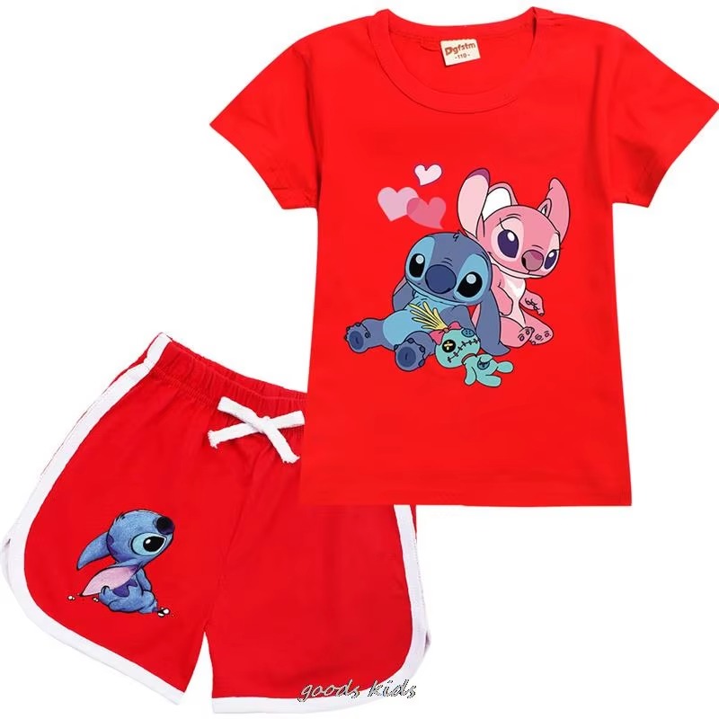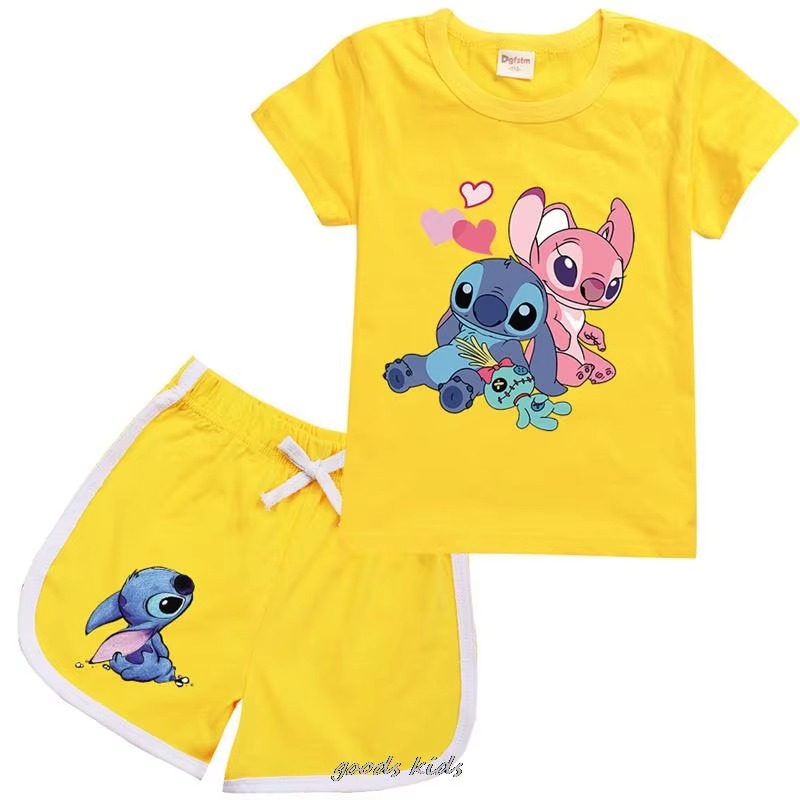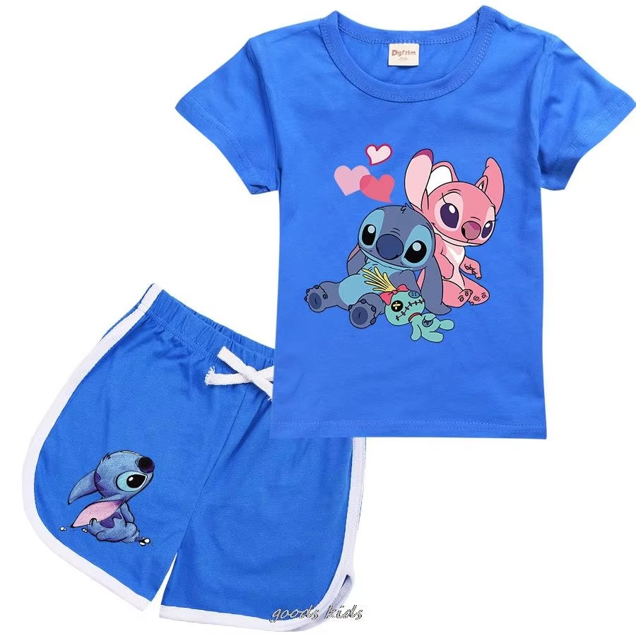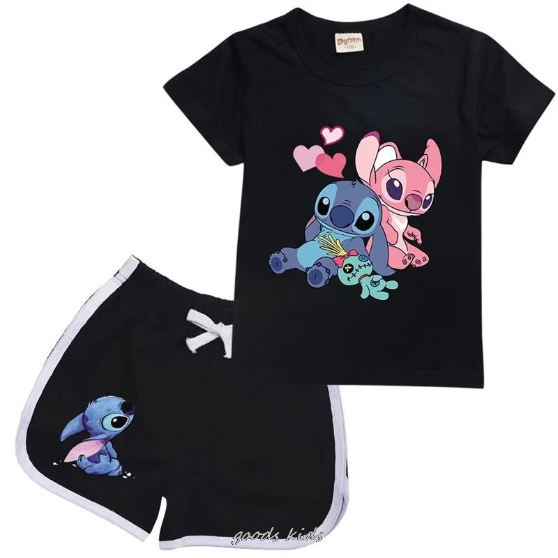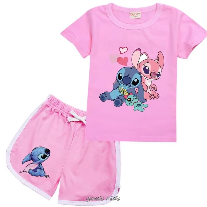 Lilo And Stitch Children T-shirt Summer New Kids Girls Clothing of Cotton Children’s Short-sleeved Pants Two-piece Suit 2-16Y